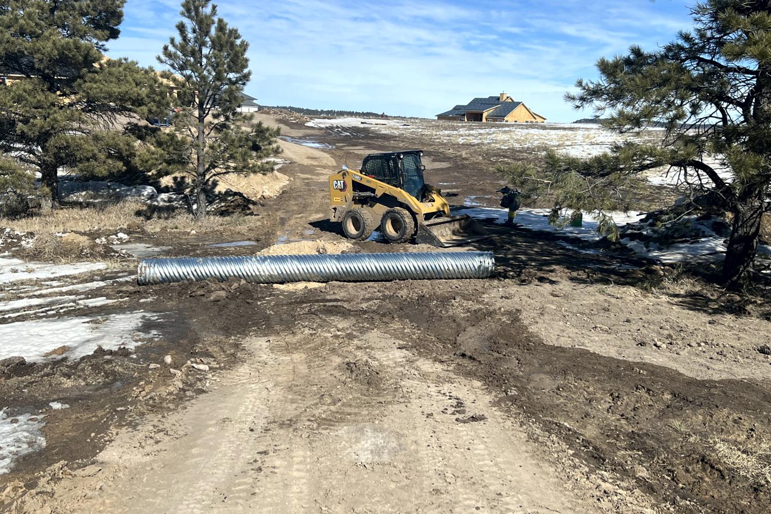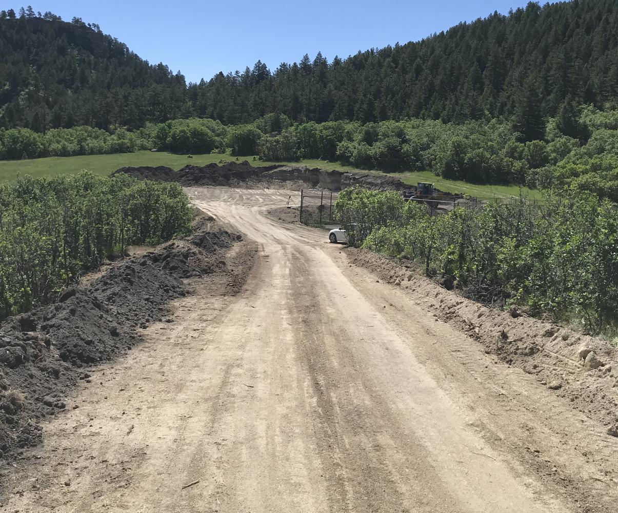 Grading (all sizes), Driveway Construction (new and overhaul), Culvert installation, Utility trenching, French Drains, Post hole drilling, Barn site work, Arena site work, Private road grading and construction